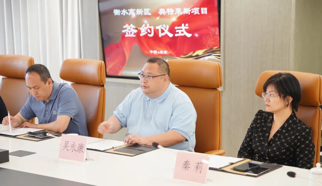 簽約儀式上,衡水高新區(qū)科技創(chuàng)新中心主任駱妍與奧特萊斯(中國)副總裁秦莉代表雙方正式簽約。
