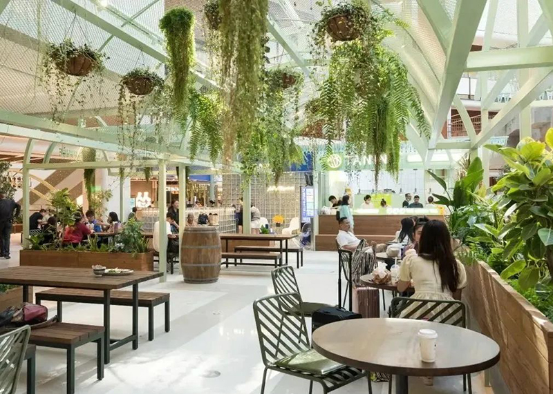 在購物中心內(nèi)打造市集,將顛覆傳統(tǒng)餐飲模式,從“吃”的需求引入社交屬性,喚醒人們對自然和食物本源的集體記憶。瑞虹新城太陽宮FOODIE SOCIAL 2.0南里食集坐擁25米挑高的5000㎡空間,目之所及皆有光與綠植,猶如一個有戶外感的美食空中村落。