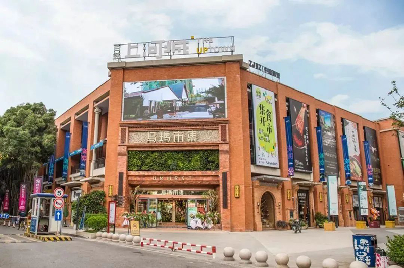在舊址為南寧江南區(qū)絹紡廠的獨棟樓房里打造美食生活文創(chuàng)市集——烏瑪市集,重喚建筑的繁華。在6600㎡的空間內(nèi),利用美食、閱讀、花藝、手作等業(yè)態(tài)重現(xiàn)生活美好的情景。整體設計營造東南亞國家的熱帶雨林風情,80%的空間都能接受陽光的沐浴,無處不在的鮮花、綠植環(huán)顧「野餐營地」、「陽光走廊」、「中國風&異域風情市集」、「美食小吃風情街」等空間區(qū)域。