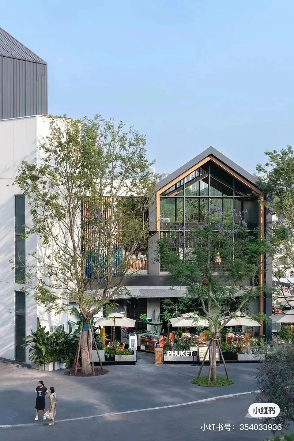 街道旁的建筑采用了大面積落地窗設(shè)計(jì),讓室外的綠意與光線無(wú)縫融入室內(nèi)空間,營(yíng)造出一種開闊而明亮的氛圍,使人心曠神怡,毫無(wú)拘束之感。