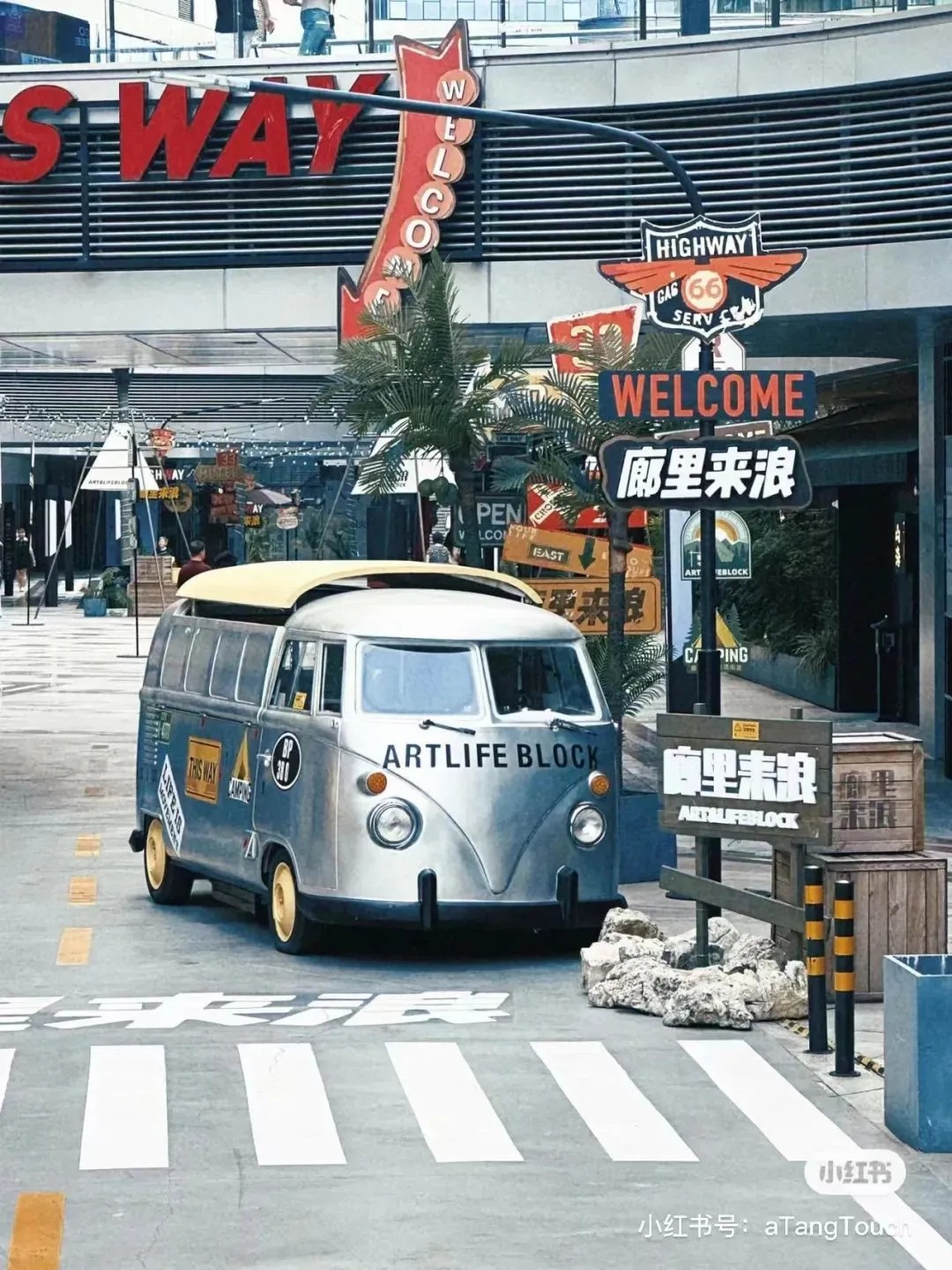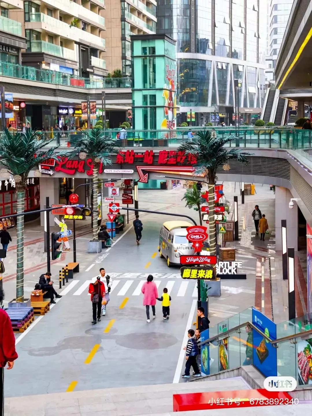 街區(qū)核心的下沉式廣場(chǎng),匠心獨(dú)運(yùn),以美式公路風(fēng)情為藍(lán)本,巧妙融合異域風(fēng)韻與休閑度假氣息,不僅設(shè)計(jì)獨(dú)樹一幟,更成攝影打卡新寵,讓人仿佛穿越時(shí)空,瞬間切換場(chǎng)景,領(lǐng)略多元文化的魅力。此舉不僅巧妙解決了傳統(tǒng)商業(yè)下沉空間引流之困,更為其注入了勃勃生機(jī)與無(wú)限可能。