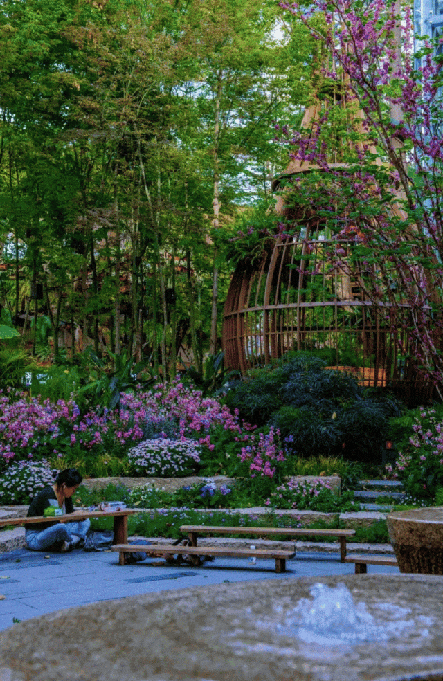 綠樹蔥蘢、繁花似錦,配合匠心獨(dú)運(yùn)的休憩布局,共同編織出一個遠(yuǎn)離塵囂的森系都市綠洲。然而,若要深入探討森系商業(yè)背后的成功秘訣,僅僅依靠視覺上的高顏值是遠(yuǎn)遠(yuǎn)不夠的。更為核心的是,它必須能夠塑造出一種獨(dú)一無二的文化氛圍與精神內(nèi)核,這種獨(dú)特的文化氣質(zhì)與靈魂,才是讓顧客心生向往、流連忘返的關(guān)鍵所在。