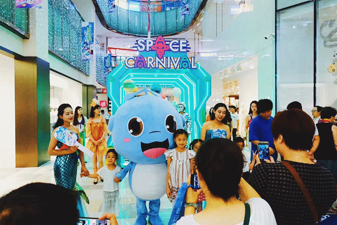 對于城市而言,天津作為海濱城市,海洋元素的小鯨魚IP衍生也是在地文化內容發(fā)酵的重要一環(huán)。原創(chuàng)主題IP“鯨仔”作為天津第一個購物中心主題IP,擬人化形象助力品牌傳播,通過鯨仔IP的逐步成長,在地文化也將植入這種符號化、人格化的形象,塑造了多場商業(yè)美陳、平面延展、在線客服、抖音網(wǎng)紅、巡游快閃等活動,把商業(yè)和精神消費相融合,快速匯聚人氣,打開城市發(fā)展的認知度、文化力和性格定位。