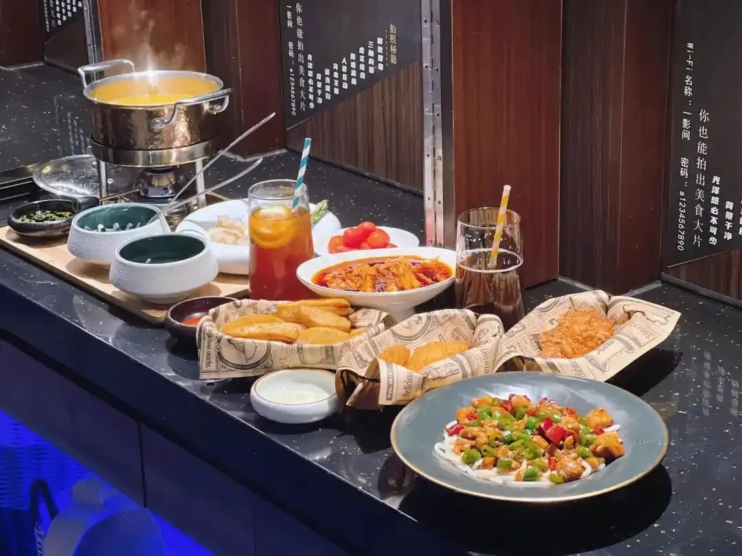 如“一影間·融合面”建國門外大街店,內(nèi)部空間設(shè)計的合理有趣,用餐空間被隔板隔開,給予消費者充分的私密感和自由度;還充分考慮到i人的社交心理,出餐時通過小隔板窗口遞進(jìn)就餐區(qū),給用餐者提供了一個自由探索體驗的用餐空間。