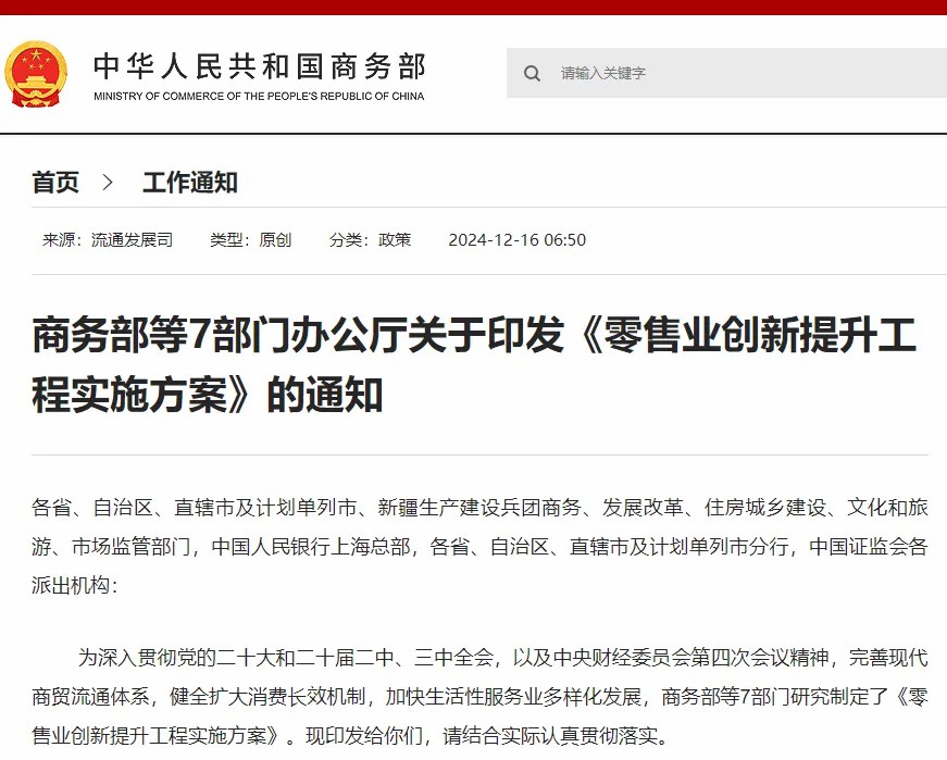 對實體商業(yè)而言,12月16日,商務部等七部門辦公廳聯(lián)合印發(fā)《零售業(yè)創(chuàng)新提升工程實施方案》(以下簡稱《方案》),旨在推動商業(yè)場景化改造、多元化業(yè)態(tài)融合創(chuàng)新、品質(zhì)化產(chǎn)品和服務供給、數(shù)字化賦能、產(chǎn)業(yè)鏈協(xié)同降本增效。