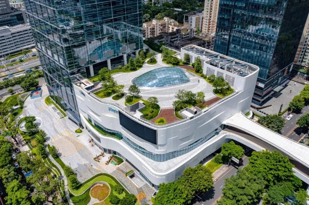 此外,深圳天河城的商業(yè)區(qū)域與3萬平方米的屋頂花園共享,將生態(tài)和綠色空間巧妙地融入購物中心的設計之中。為了確保商業(yè)空間與外部自然環(huán)境的無縫對接,深圳天河城特別設計了空中步廊,將項目與圍嶺山公園連接起來,實現(xiàn)了從屋頂花園到自然公園的流暢過渡,為消費者提供了一個連續(xù)的游逛體驗。