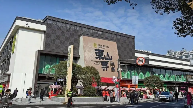 杭州東山弄市集位于杭州市西湖區(qū)靈隱街道外東山弄86號,其前身為東山農(nóng)貿市場,2024年12月12日,經(jīng)過近一年的升級改造,以西湖?東山集的新面貌正式開業(yè)。