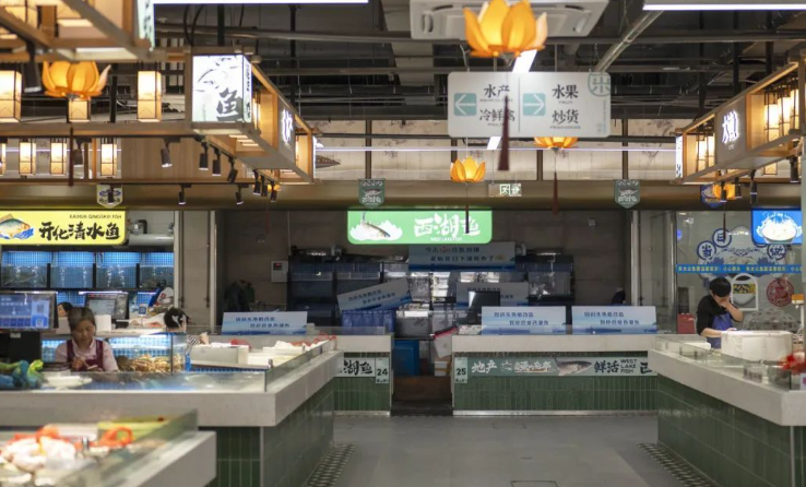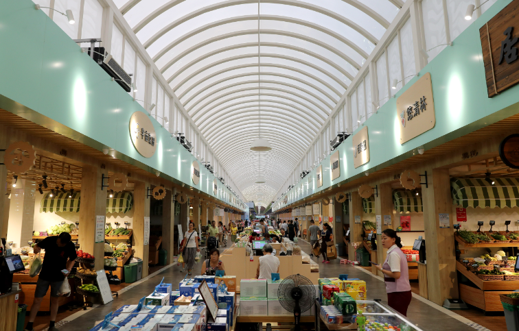 改造后的福明菜場對空間進行了重新規(guī)劃,設置了蔬菜、水果、肉類、海鮮、禽蛋、豆制品、熟食等不同的功能區(qū)域。除了傳統(tǒng)的農(nóng)產(chǎn)品攤位外,福明菜場還引入了許多特色業(yè)態(tài)。如增加了鮮花店、烘焙坊、小吃店、便利店等,滿足了消費者在購物過程中的多樣化需求。同時,還設置了一些品牌農(nóng)產(chǎn)品專賣店,提供高品質的特色農(nóng)產(chǎn)品,提升了菜場的檔次。