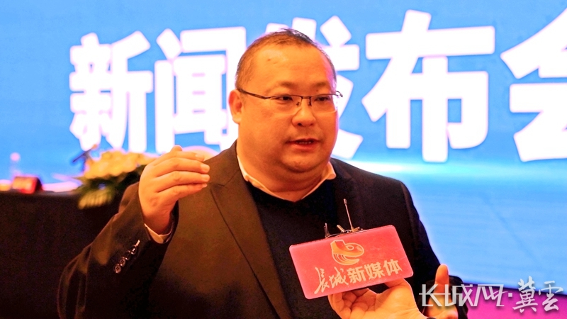 奧特萊斯(中國(guó))總裁吳永康在新聞發(fā)布會(huì)上回答記者提問。長(zhǎng)城網(wǎng)·冀云客戶端記者 蘇曉瑞 攝